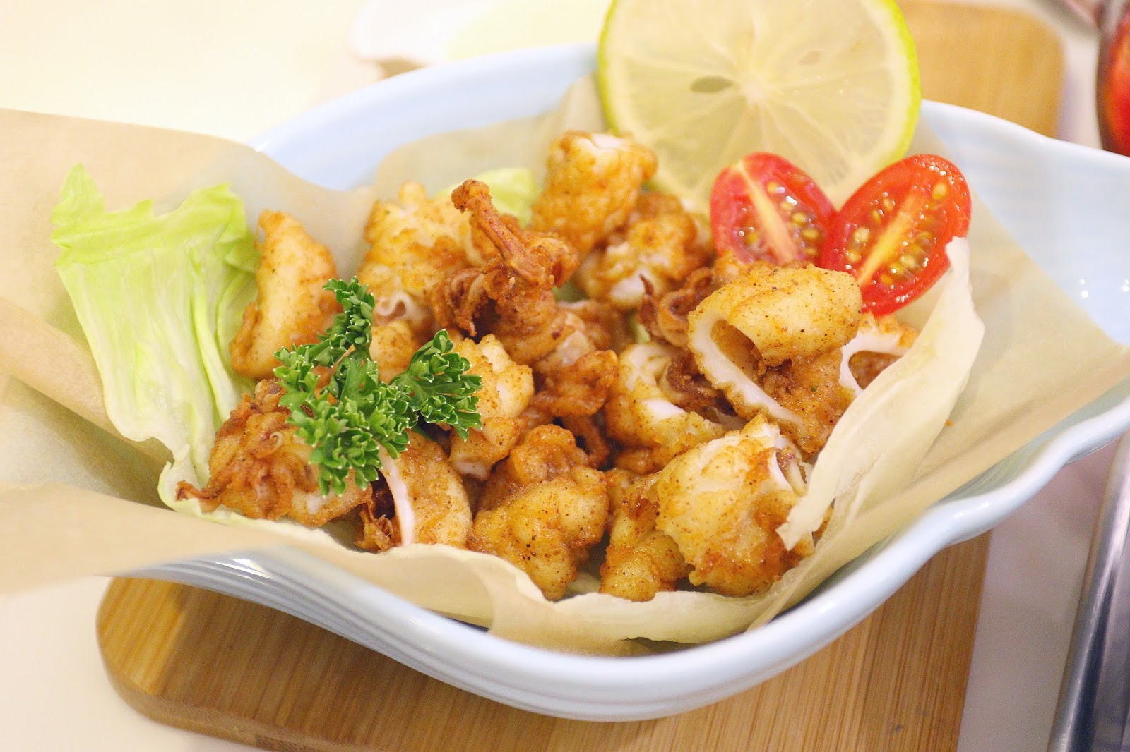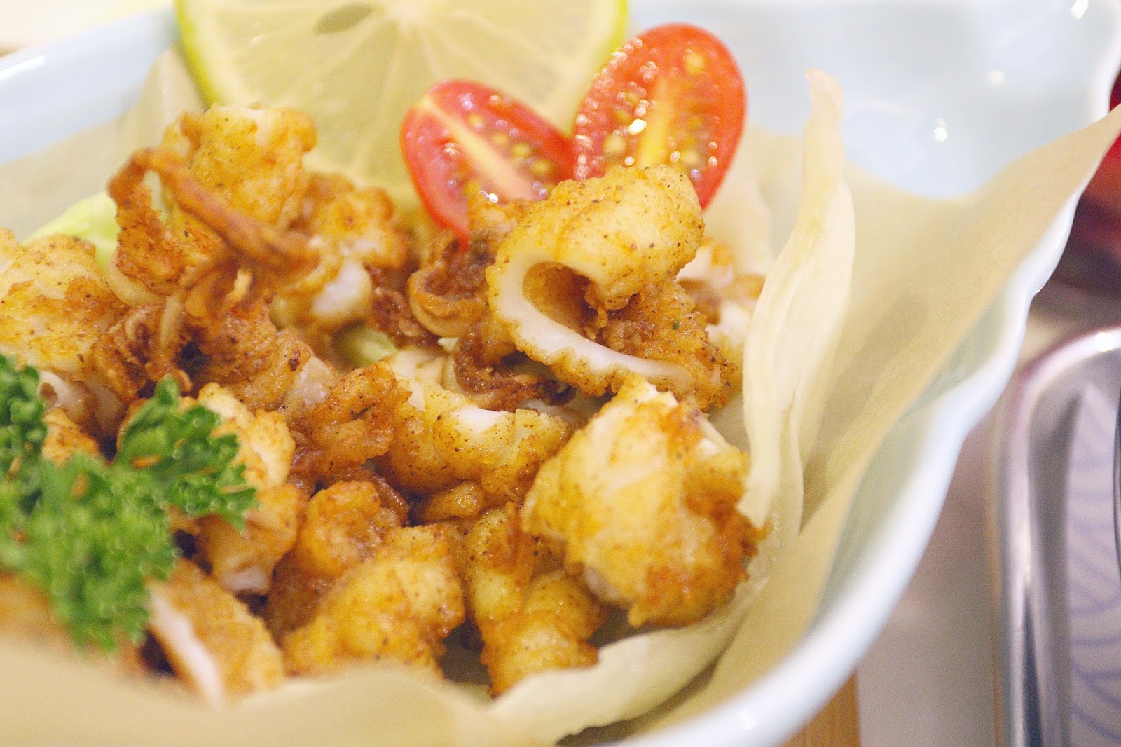 脆甜的花枝裹上薄薄調味炸粉,表皮的微鹹剛好帶出花枝本身的鮮甜,不沾醬也好吃,