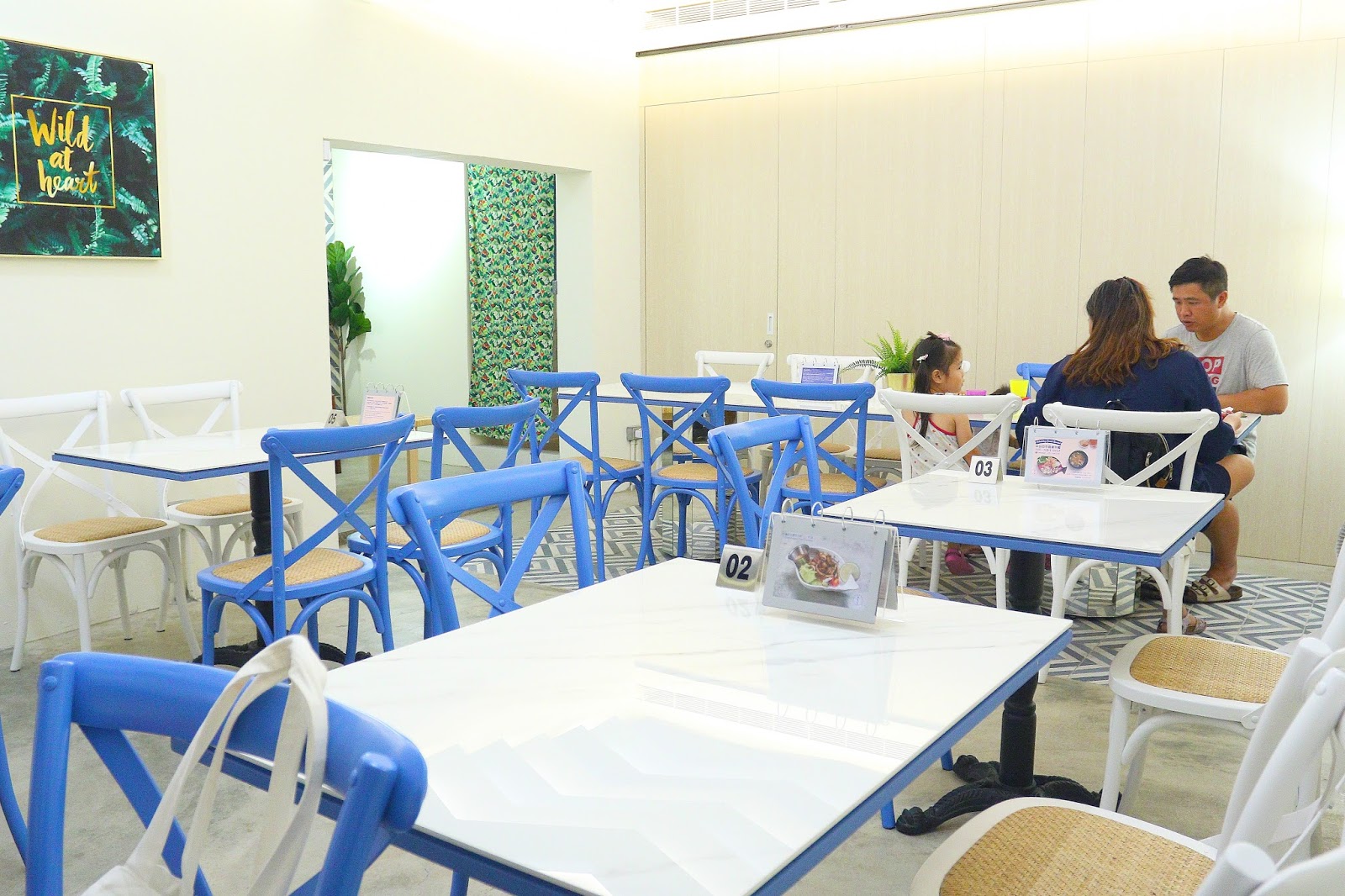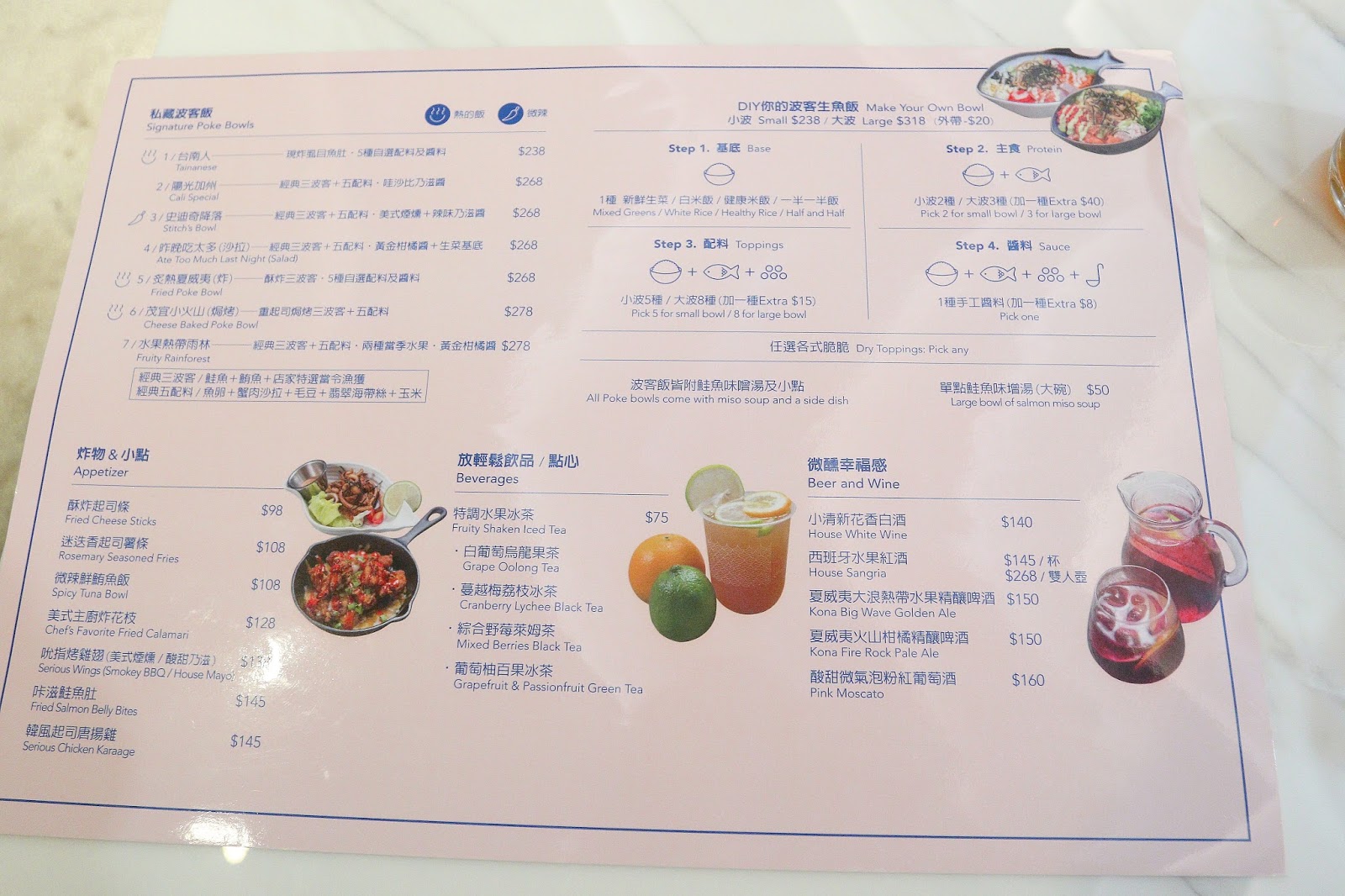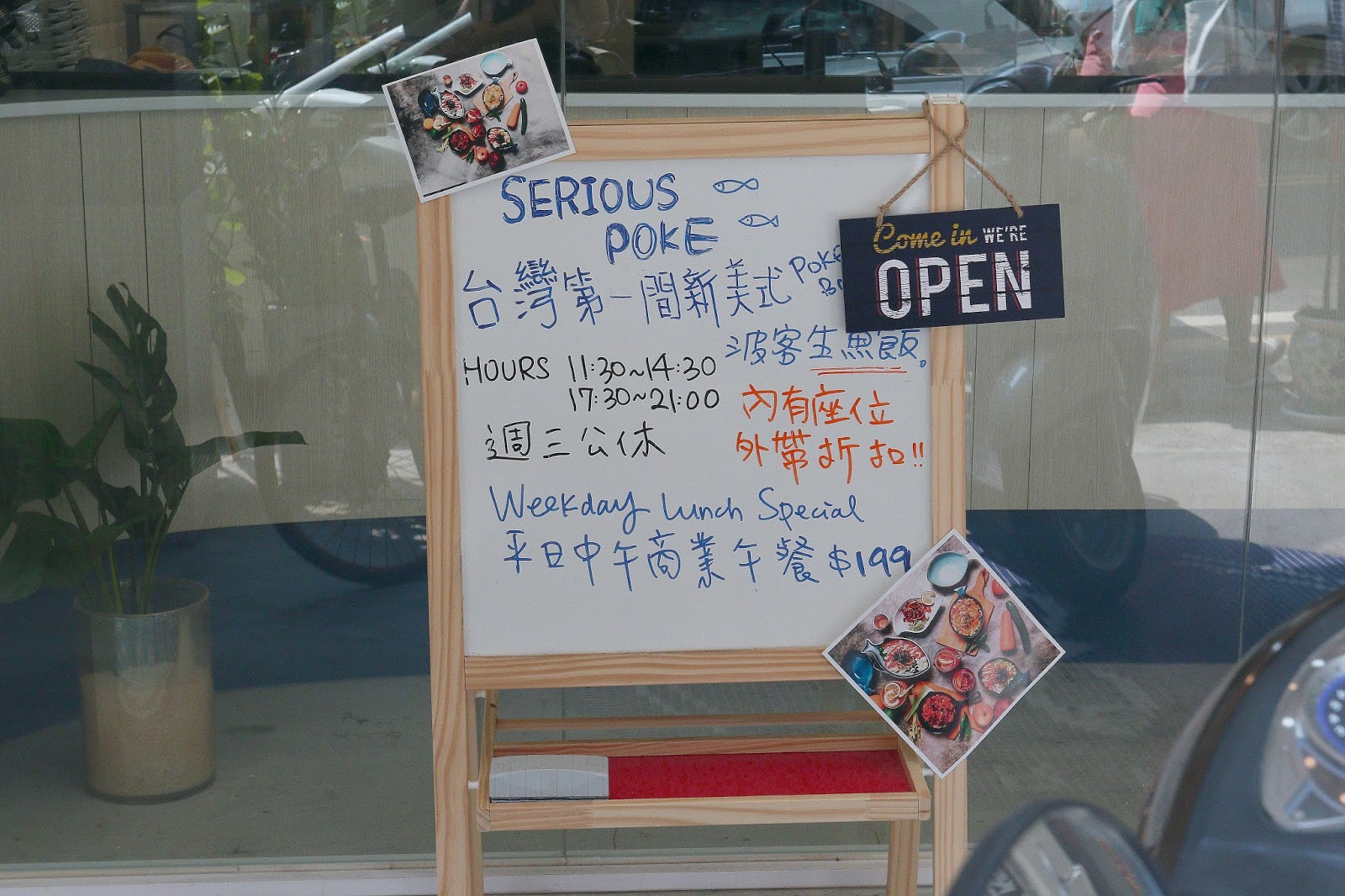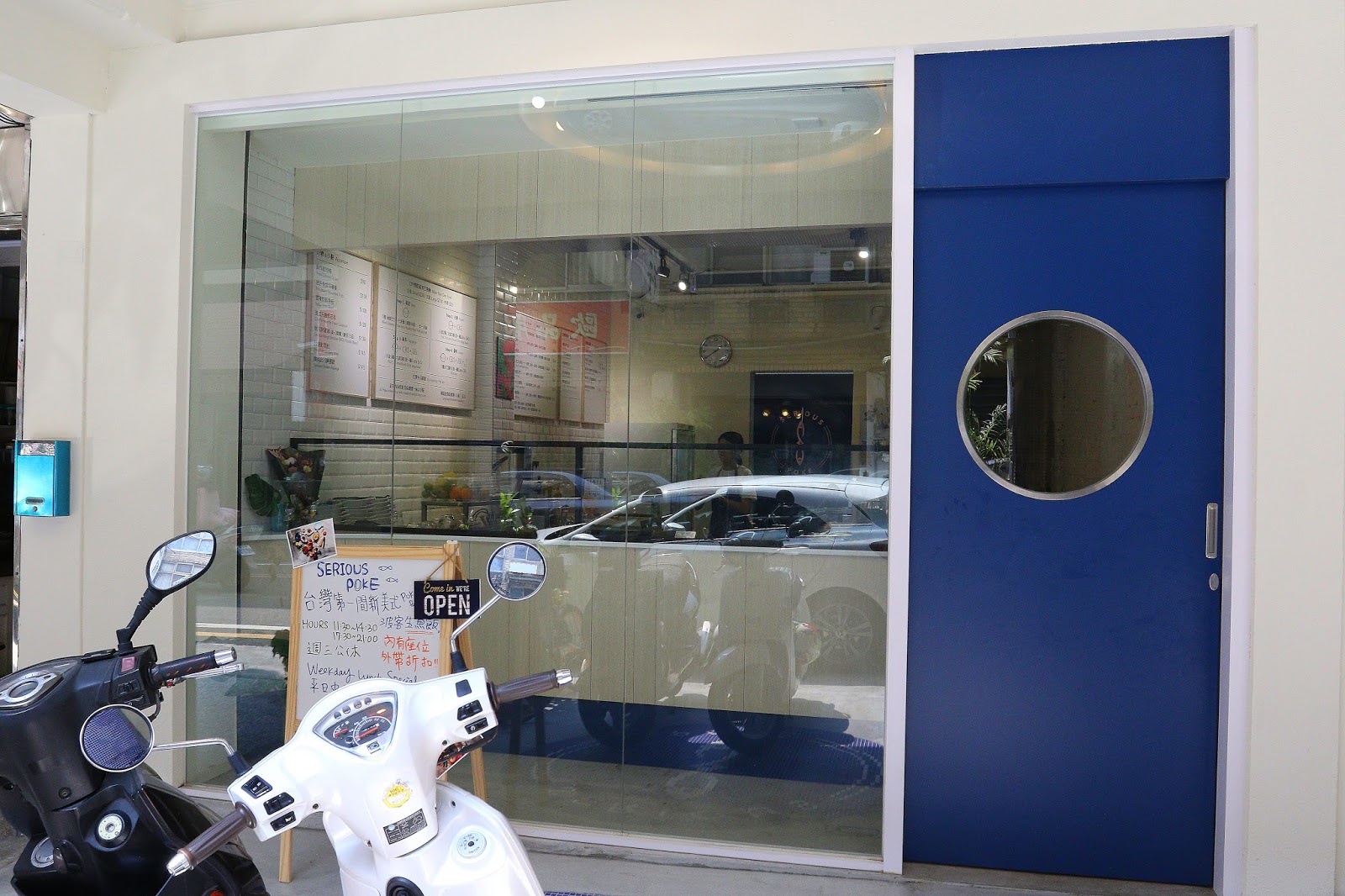 Serious Poke從外往內看整體以藍白色營造出悠閒氛圍,