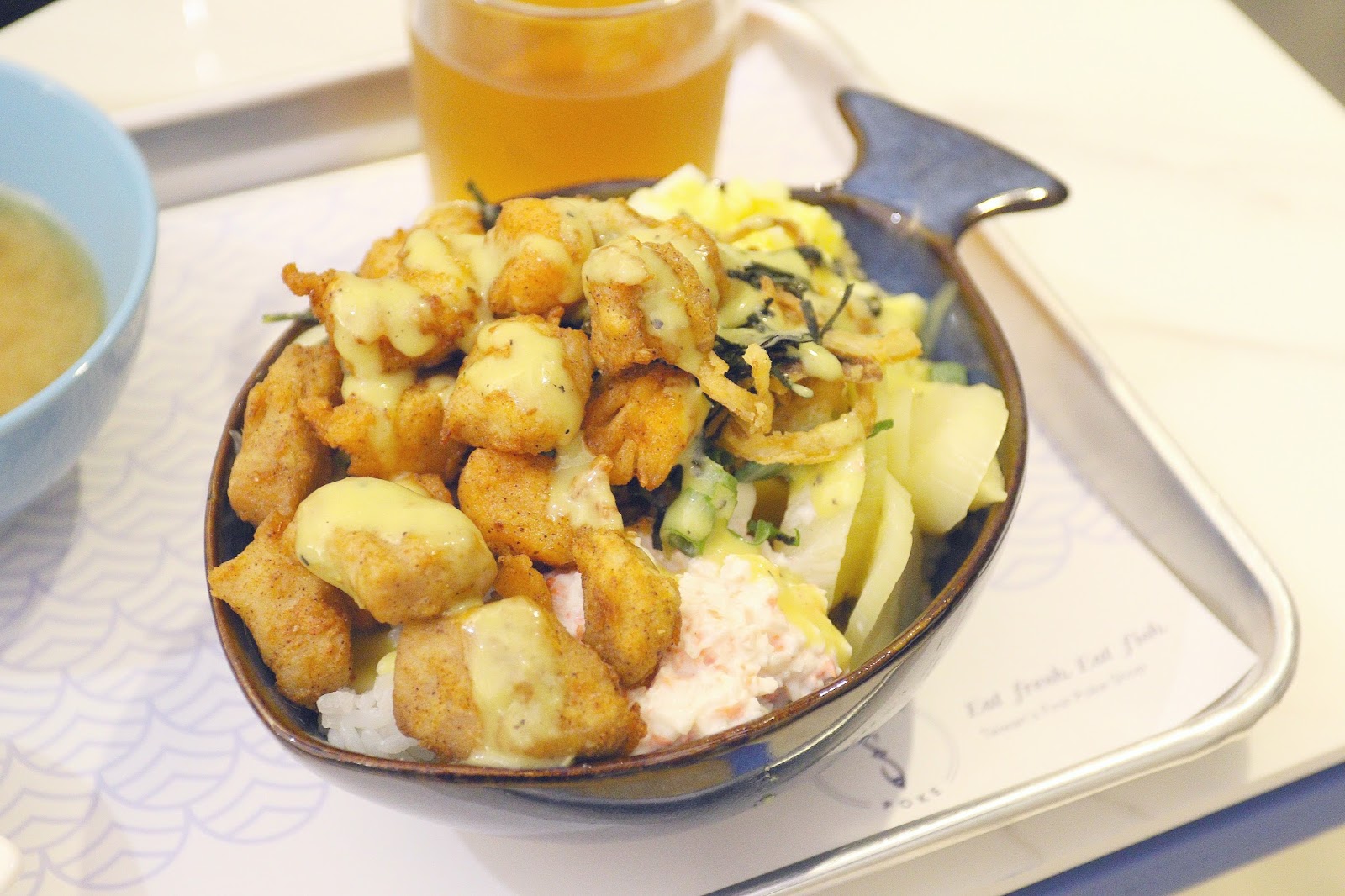 不敢吃生魚的人可以選擇這道,一樣主食材是鮭魚、鮪魚、旗魚但經酥炸過,