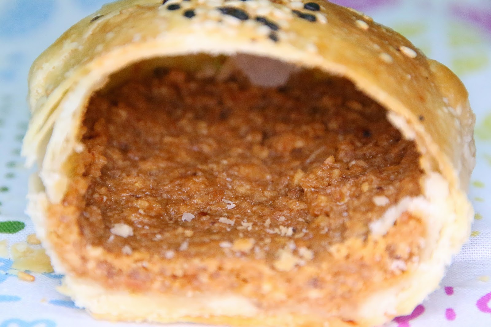 鮮肉建議買完現場食用,不然內餡冷卻後就會像下圖,肉餡粗細肥瘦都有,調味以黑胡椒為主,