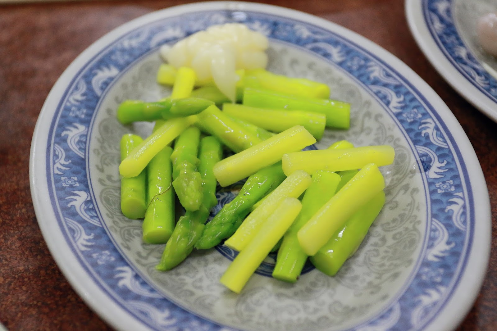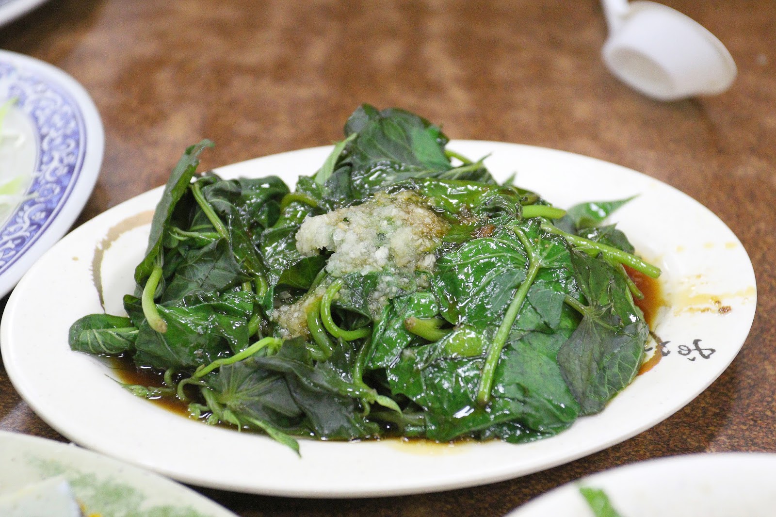 川燙過的地瓜葉拌上醬油膏跟蒜泥,