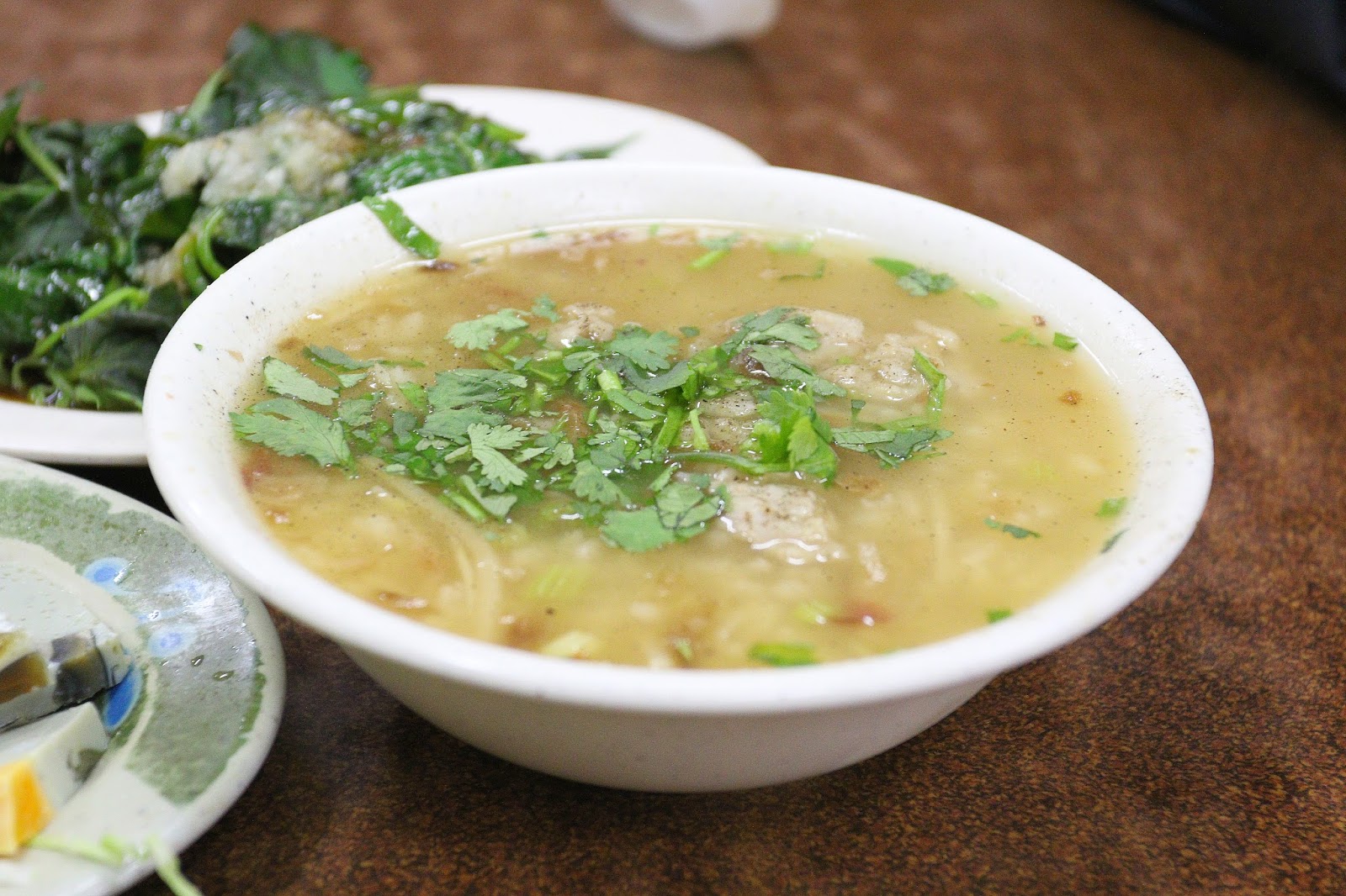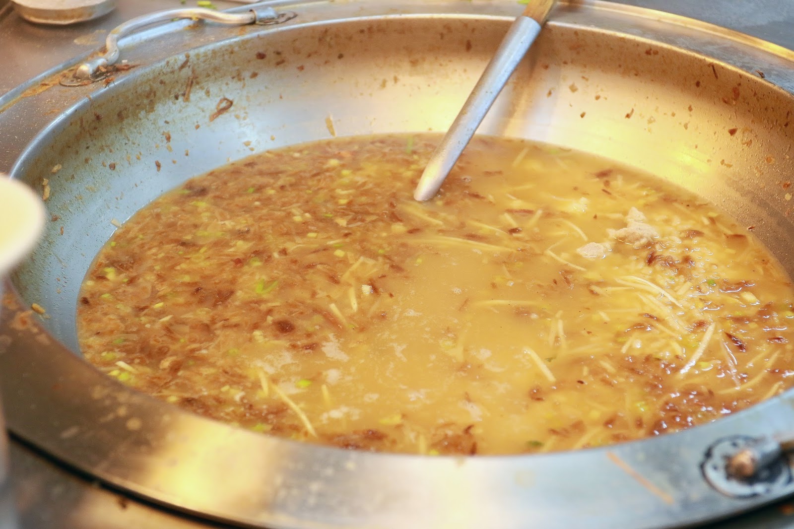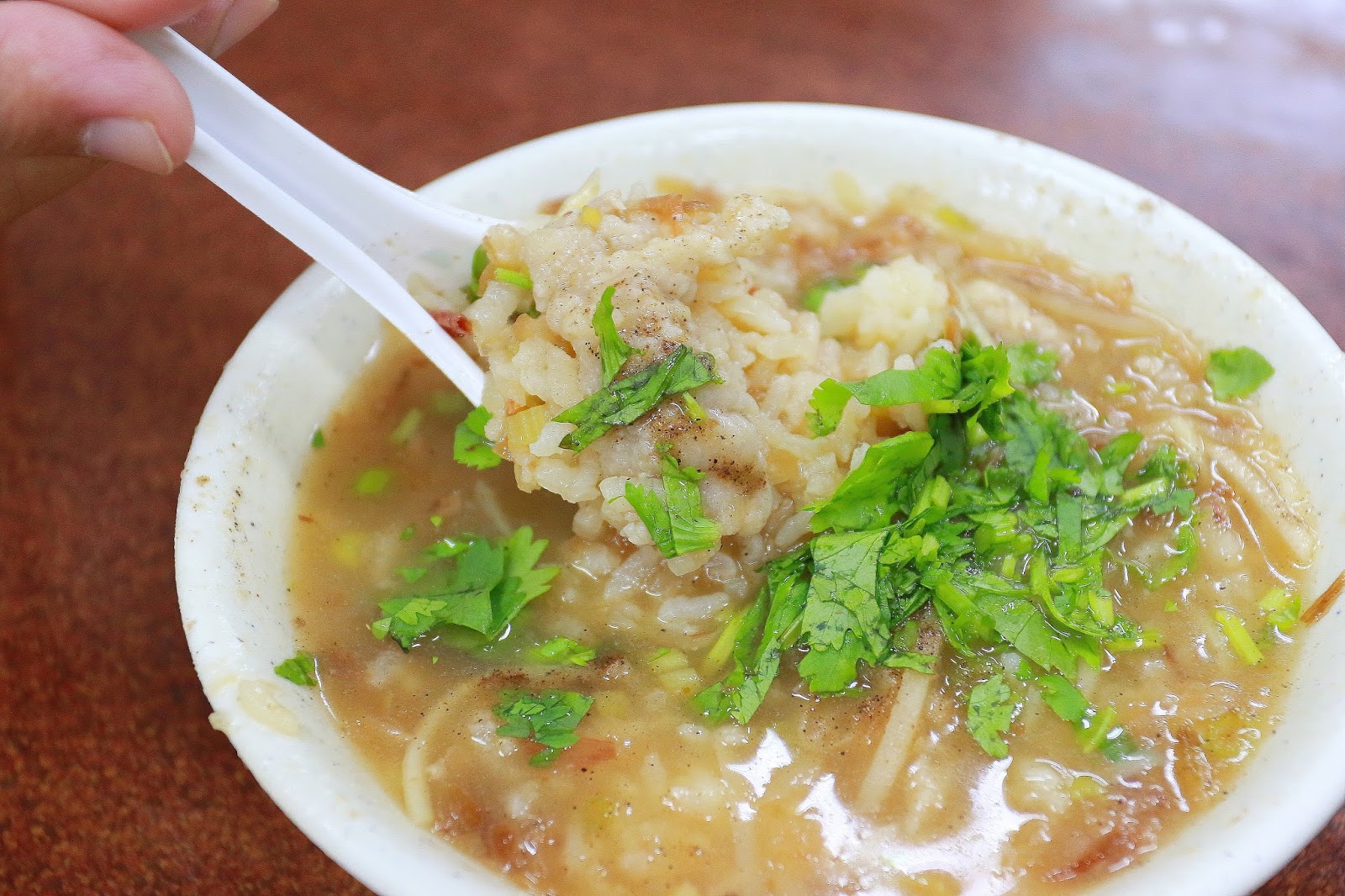 一到門口就可以微微聞到整鍋肉粥裡的油蔥香味,