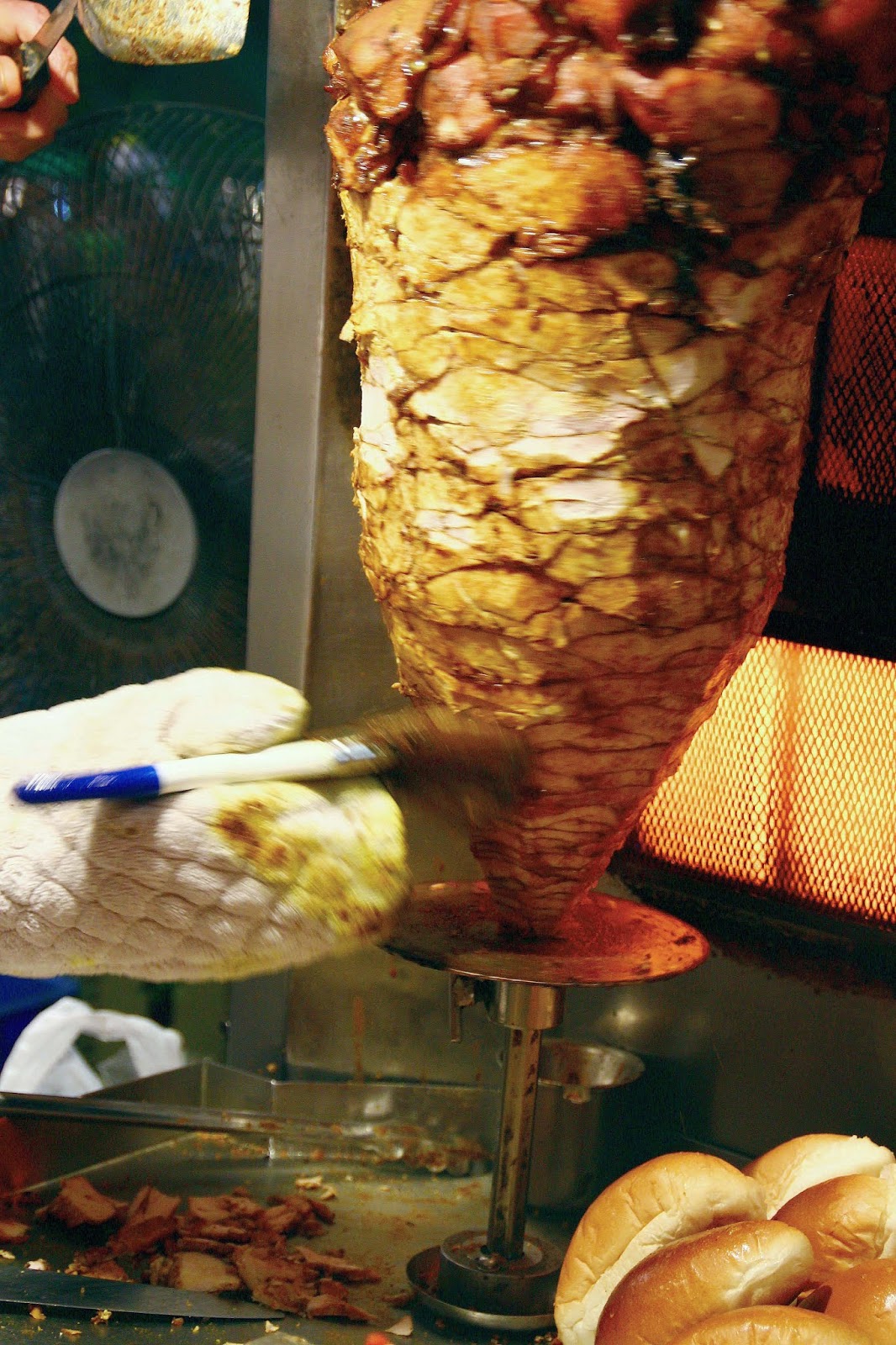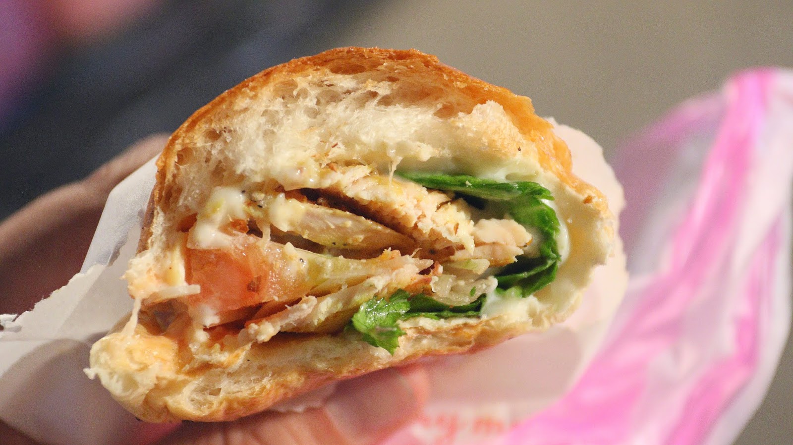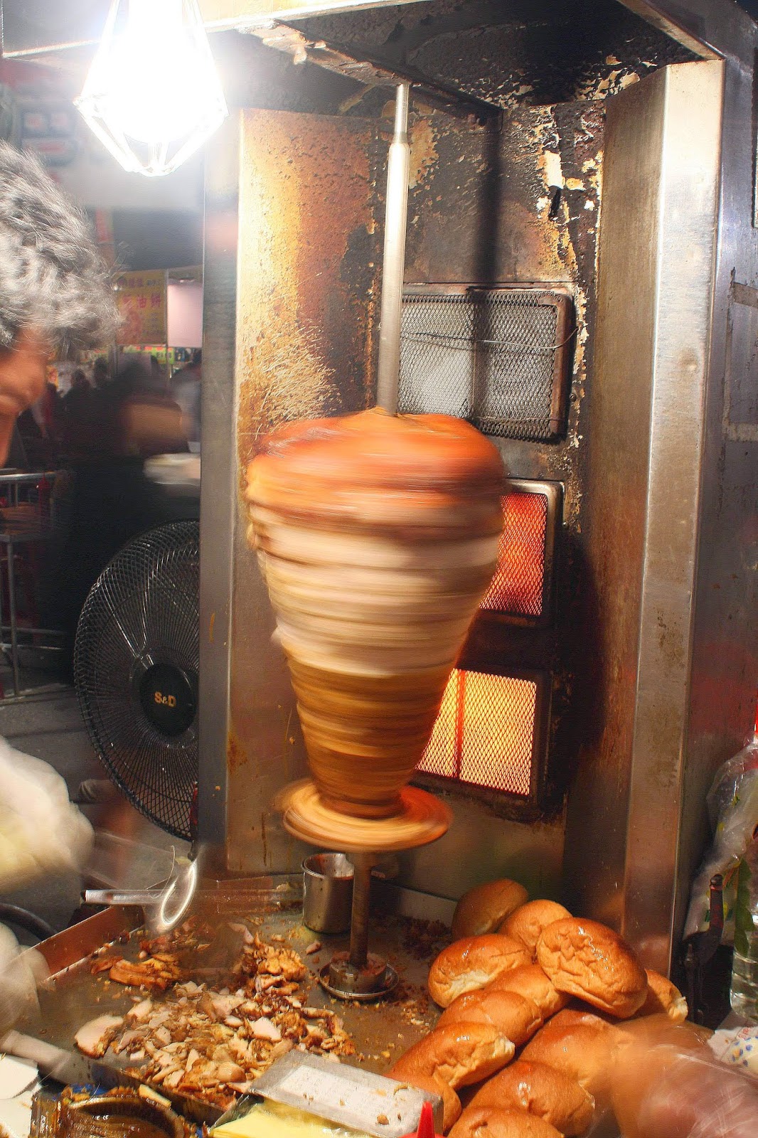 旋轉削下充分加熱揮發出香味的雞胸肉夾進潛艇堡麵包裡,