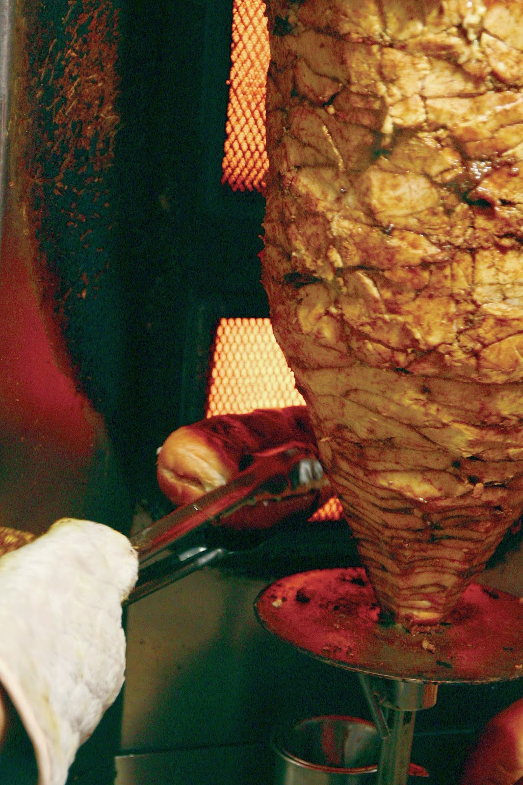 速立邁沙威瑪是由熟雞胸肉疊起的大肉串,