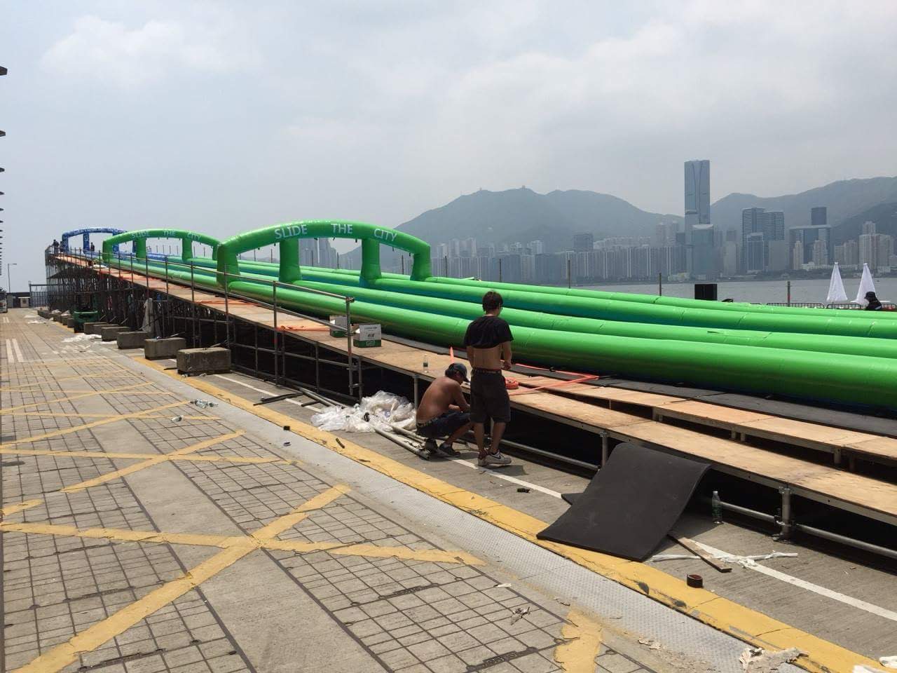 海尼根與美國鹽湖城Slide the city團隊合作,即將在高雄舉行「海尼根世界城市滑水道」活動,下圖為香港現場,台灣這次以高12公尺(約4層樓)的充氣滑水道為主要特色,長達170公尺滑完要15-20秒鐘,相信台灣高雄場一定比香港的還刺激,