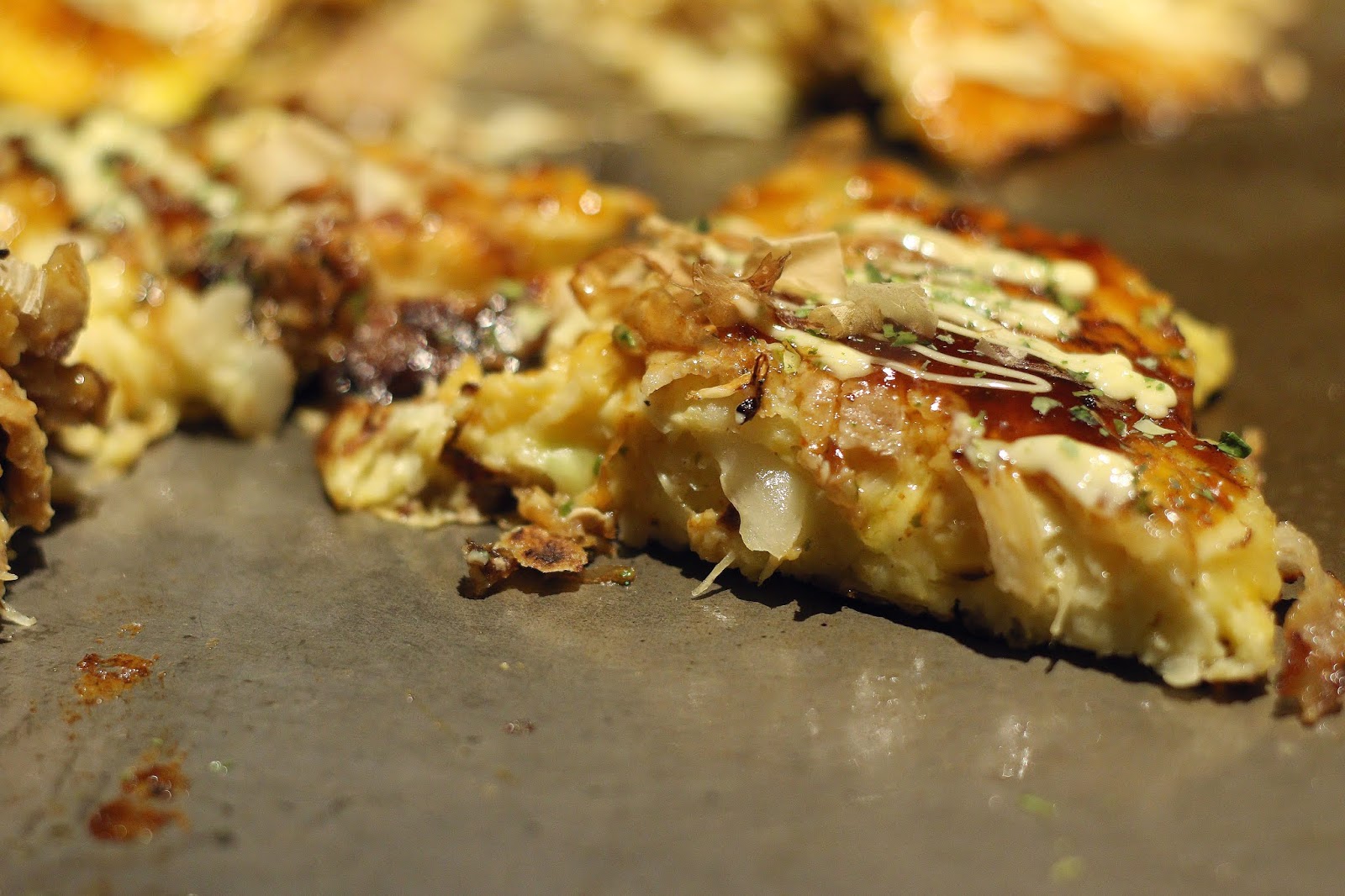 最後來說說愛夏子的大阪燒,曾有人跟我說它不正統,但我覺得這就好比大阪另一樣美食-章魚燒,台版的表層是焦脆內裏熟度也較高,不像日式裡面是軟呼呼的, 這裡的大阪燒外層焦香,內裏雖不像在日本吃到的還有些許稠狀,但也不至於到乾硬,仍保有麵糊的些微濕度與彈性,畢竟不是每個人都可以接受半熟狀態的麵糊,也許在日本也有這種口感的大阪燒只是我沒吃過而已, 如果喜歡偏日式口感,我推薦在安平的川本家,記得只有假日的下午才有賣大阪燒