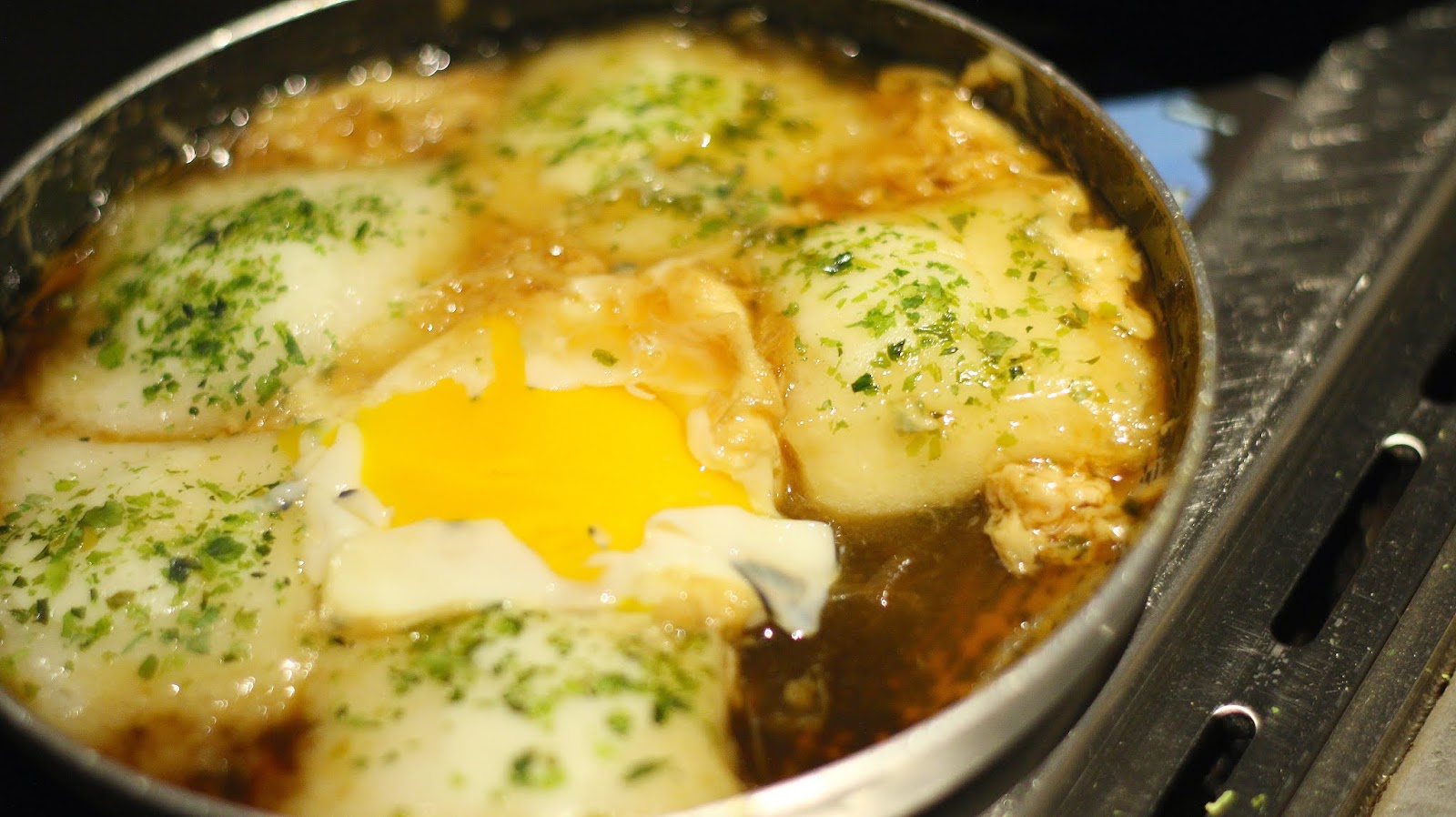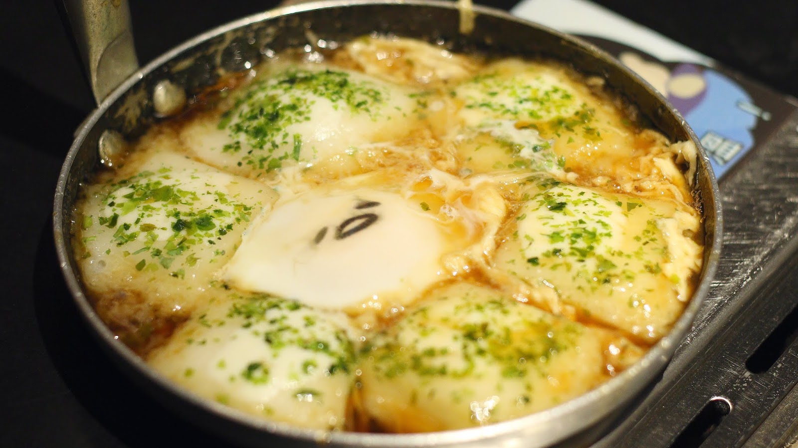 麻糬搭配半熟蛋還有偏甜類似照燒醬的醬汁,