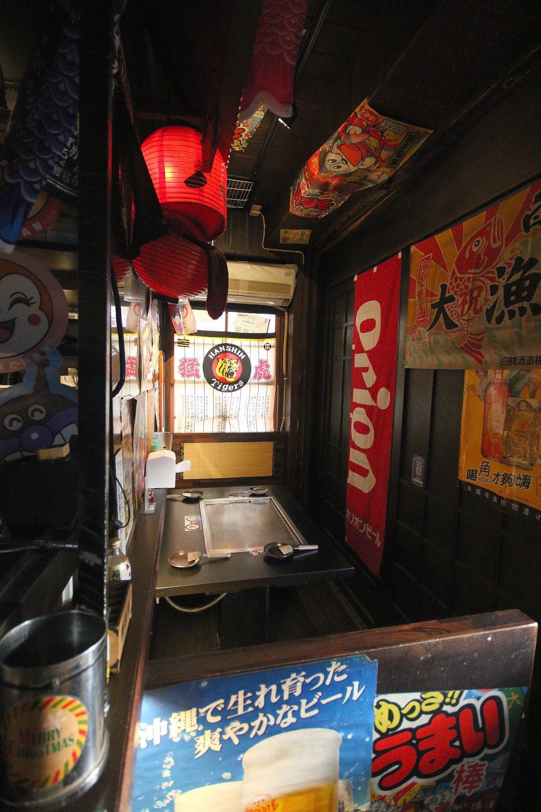 整體調性以木頭搭配日式風格(大漁旗、酒旗、阪神虎)為主軸,